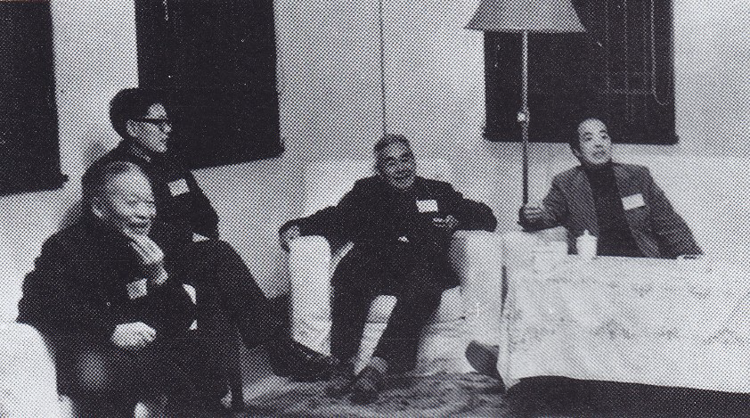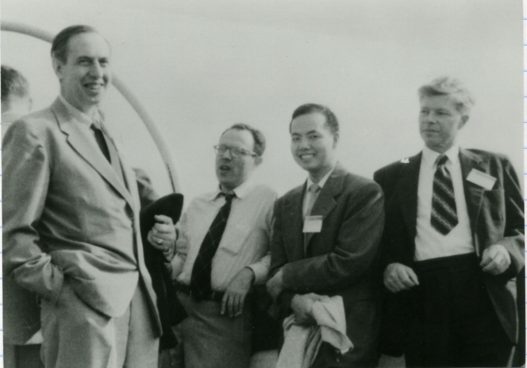 图16 在第九届中美会谈上,李政道、周光召、谢家麟、叶铭汉讨论BEPC工程建设问题