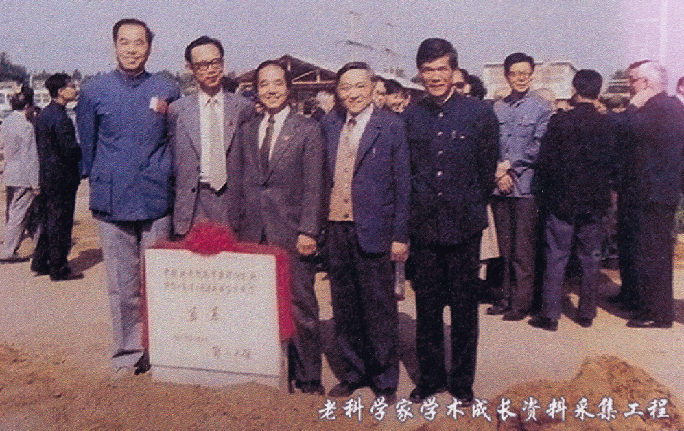 图17 1984 年10 月,BEPC 奠基时合影(左起:张厚英、李明德、李政道、叶铭汉、何国伟)