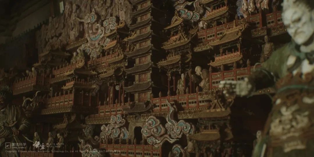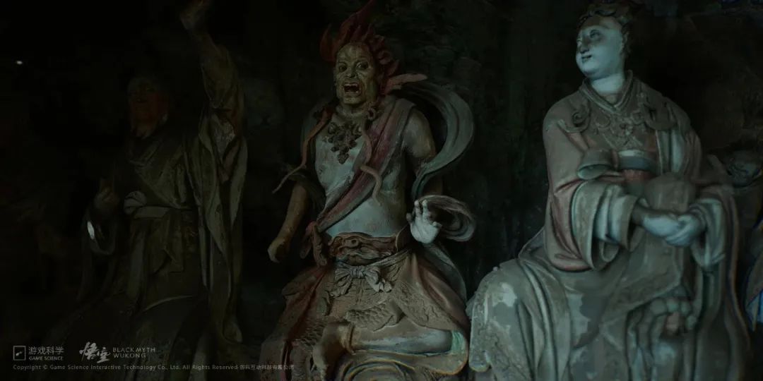“大家随时都可以去亲临感受,然而即使修复文物的修复工作花费了大量精力,但还是不能完全感受到当时的场景了,它更适合在一个虚拟的场景中呈现出来,这也是我们当时做《黑神话悟空》的一个初衷——就是在游戏中仍然保留有时间记忆的记号,在材质上尽量去研究关于不同的氧化材质的表现,在不同的固定材质上如何去做结合,还包括这些文物上的灰尘;在扫描的时候也不能去碰它,然后在后期数字还原的时候,也不要去做材质上的变化,还是去保留原先的东西。”
