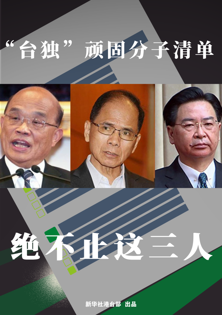 新华社北京11月24日电(记者陈舒、石龙洪、刘欢)国台办发言人朱凤莲24日在例行新闻发布会上表示,苏贞昌、游锡堃、吴钊燮等极少数“台独”顽固分子挑动两岸对立、破坏两岸关系、图谋分裂国家、危害台海和平,我们依法对其实施惩戒。可以明确的是,“台独”顽固分子清单上绝不止这三人。