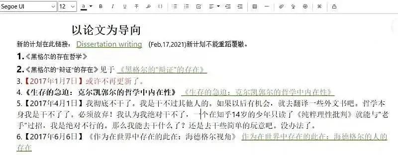 陈直的论文计划,大都停在标题阶段 ©陈直 图片来源: 谷雨实验室-腾讯新闻