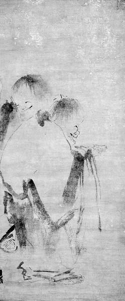 良宽作为僧侣摆脱了宗派独自修行。作为诗僧,他的诗作也是独特的,诗风淳朴,任性天真,入目即为诗,所思即成句。也正因如此,他的诗类别杂陈,难以归类。有趣的是,其中有数首以美人为主题的诗篇:“南国多佳丽,翱翔绿水滨。日射白玉钗,风摇红罗裙。拾翠遗公子,折花调行人。可怜娇艳态,歌笑日纷纭。”此类诗作以直率而浪漫的笔调,描绘了一颗羞涩而悦动的少女之心,独具风流。
