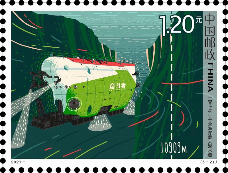 该套邮票画面采用现代手绘插画方式表现,色彩鲜亮明快,画面清新自然。邮票“嫦娥五号”表现了“嫦娥五号”月球探测器首次实施无人月面取样的工作场景。作为我国复杂度最高、技术跨度最大的航天系统工程,嫦娥五号任务实现了我国首次月面采样与封装、月面起飞、月球轨道交会对接、携带样品再入返回等多项重大突破,其成功实施标志着我国探月工程“绕、落、回”三步走规划如期完成。邮票“奋斗者”号载人潜水器以我国首台具备全球海域载人进入能力的重要装备“奋斗者”号为主画面,2020年11月10日,“奋斗者”号在马里亚纳海沟成功坐底,坐底深度10909米,刷新中国载人深潜的新纪录,标志着我国在大深度载人深潜领域达到世界领先水平。邮票“揭示蝗虫聚群成灾的奥秘”通过蝗虫聚集、4VA化学式等场景画面,表现了化合物4-乙烯基苯甲醚(4VA)是飞蝗群聚信息素这一昆虫学研究重大突破,该研究使蝗虫的绿色和可持续防控成为可能。邮票“华龙一号”以“华龙一号”为主画面,辅以质能关系式、核裂变等元素符号,该研究成果标志着我国在三代核电技术领域跻身世界前列。邮票“古DNA揭秘中国史前人群迁徙动态与族群源流”以古今对比、DNA链、古地层等为表现元素,相关研究将中国史前人群遗传与演变历史直接呈现出来,填补了东方尤其是中国地区史前人类遗传、演化、适应方面的重要信息。