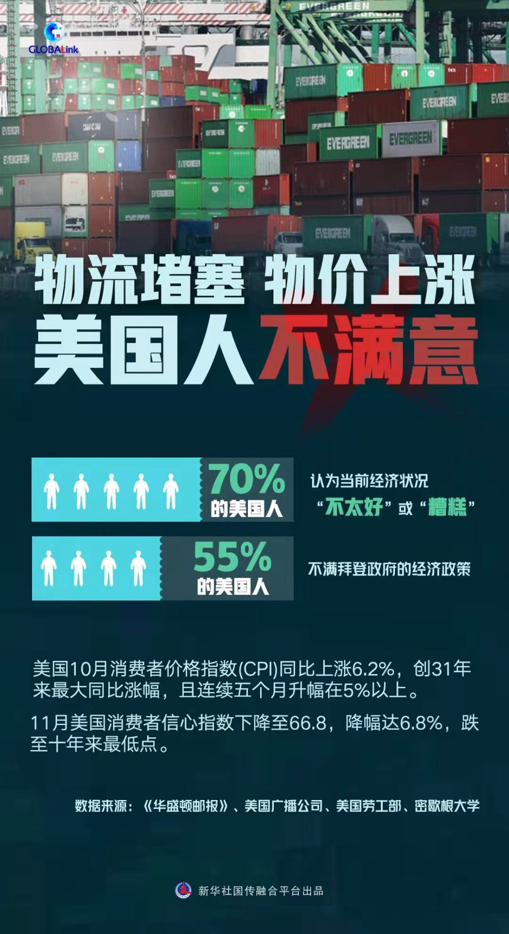 通胀加剧、供应链瓶颈、疫情抬头给美国经济复苏带来风险,再加上贫富分化加剧、财政赤字和债务日益高企,这些美国经济民生的远虑近忧就体现在感恩节这一周诸多细节中。