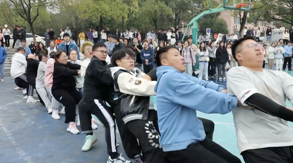 近日,在湖南怀化学院的第十七届运动会上,四向拔河项目成了全场焦点。