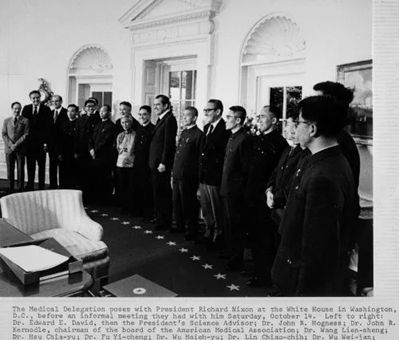 1972年10月,美国总统理查德•尼克松在白宫接见中华医学会代表团全体成员