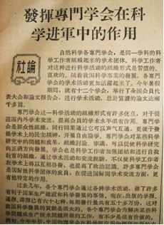1956年《人民日报》专门发表社论“发挥专门学会在科学进军中的作用”