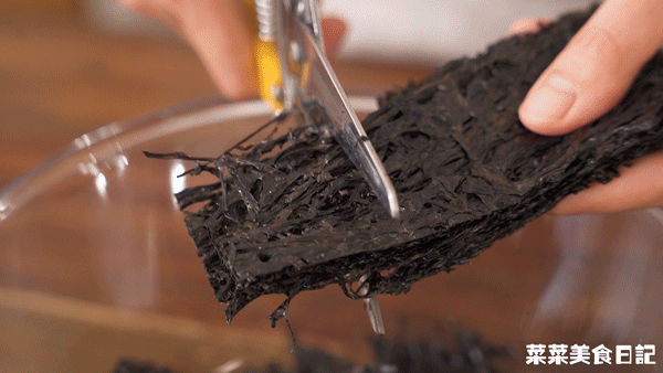 1.紫菜剪小片,泡发后沥干水分
