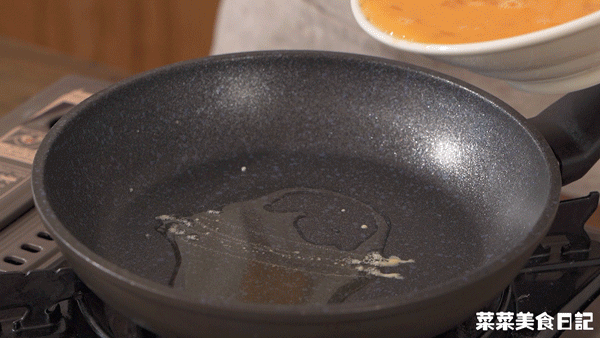 摊蛋的部分,只需一小撮盐、胡椒粉调出底味即可下锅。