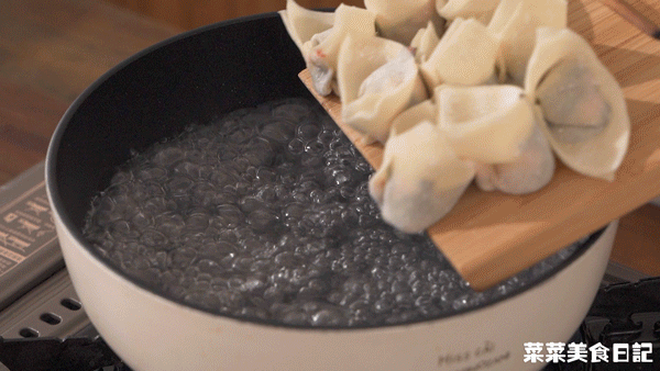2.煮一锅沸水,倒入云吞,云吞浮起后,捞起沥干