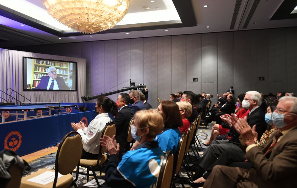 基辛格的致辞,从美国的视角,选择了当年乒乓外交的这样两个细节。第一个细节自下而上:50年前,一名美国乒乓球队员致信周恩来总理,请求邀请美国乒乓球队来中国。他特意点明,这是个人行为,并非受政府的委派。