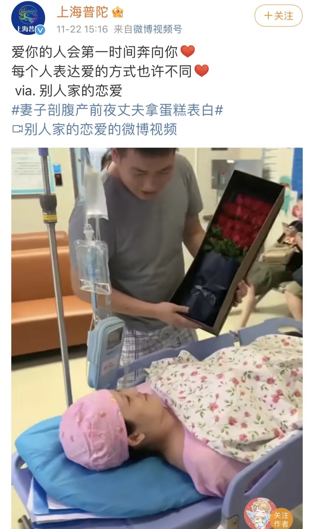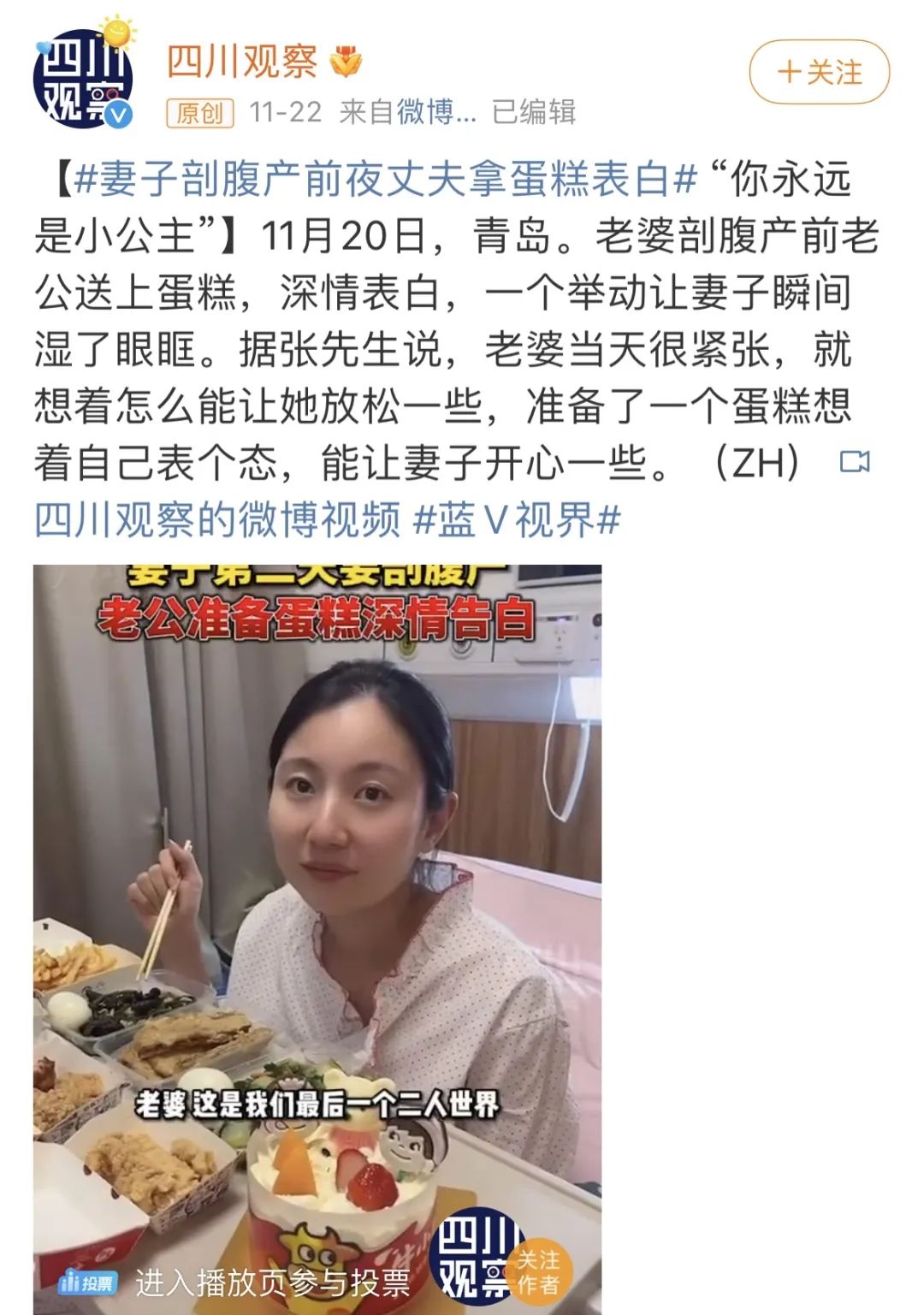 丈夫在妻子剖腹产前夜送蛋糕深情表白。/微博