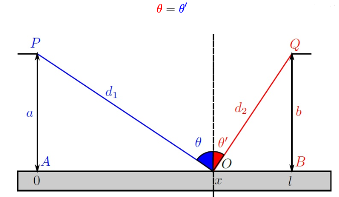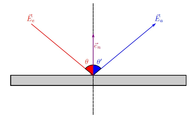 如上图所示,红色为球初始运动线,蓝色为球反射线,灰色矩形可看作球台边库,紫色中线为分界面中间的法向量,则可以得出如下假设图形:
