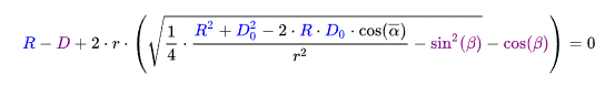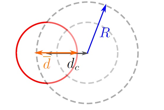 首先我们母球变大后击球薄厚影响作如下解释,如上图所示,两球最大重合厚度为d[上划线],其中灰色大圆为母球变大后大小,小圆为母球原本大小,红色为目标球大小,灰色小圆和红色圆最大重合半径为,则有: