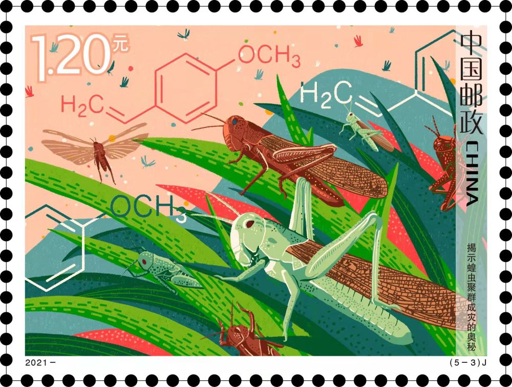 本套邮票内容为:嫦娥五号、“奋斗者”号全海深载人潜水器、“揭示蝗虫聚群成灾的奥秘”“华龙一号”“古DNA揭秘中国史前人群迁徙动态与族群源流”。