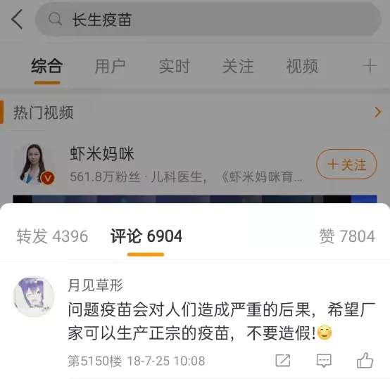微博上网友对疫苗的正向讨论