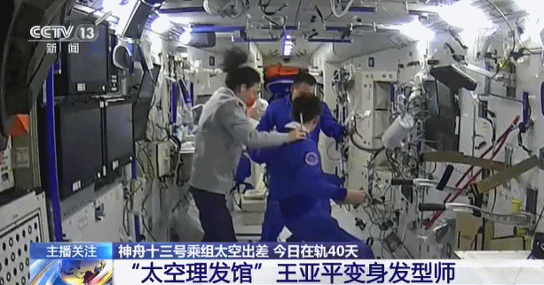 看完了航天员们的摄影作品,再来感受一下“太空理发馆”,王亚平变身发型师,她如何在太空为两位搭档修剪头发?