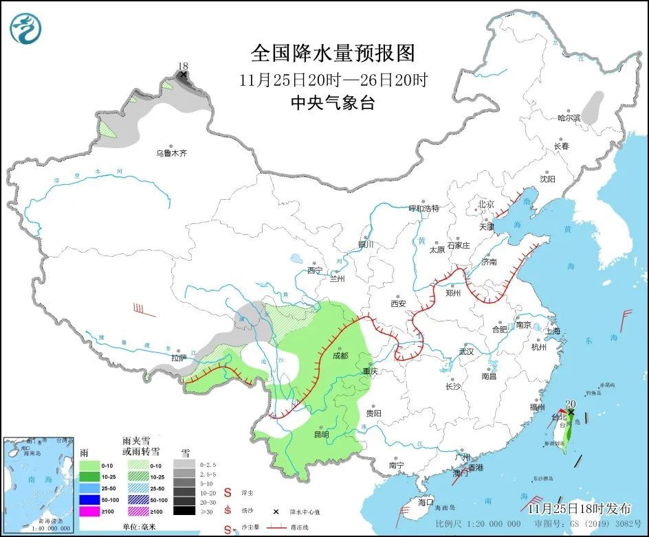 25日20时至26日20时,黑龙江东南部、新疆北部、西藏东部、青海南部等地部分地区有小到中雪。西藏东部、西南地区大部等地部分地区有小雨,台湾岛东北部局地有中雨。