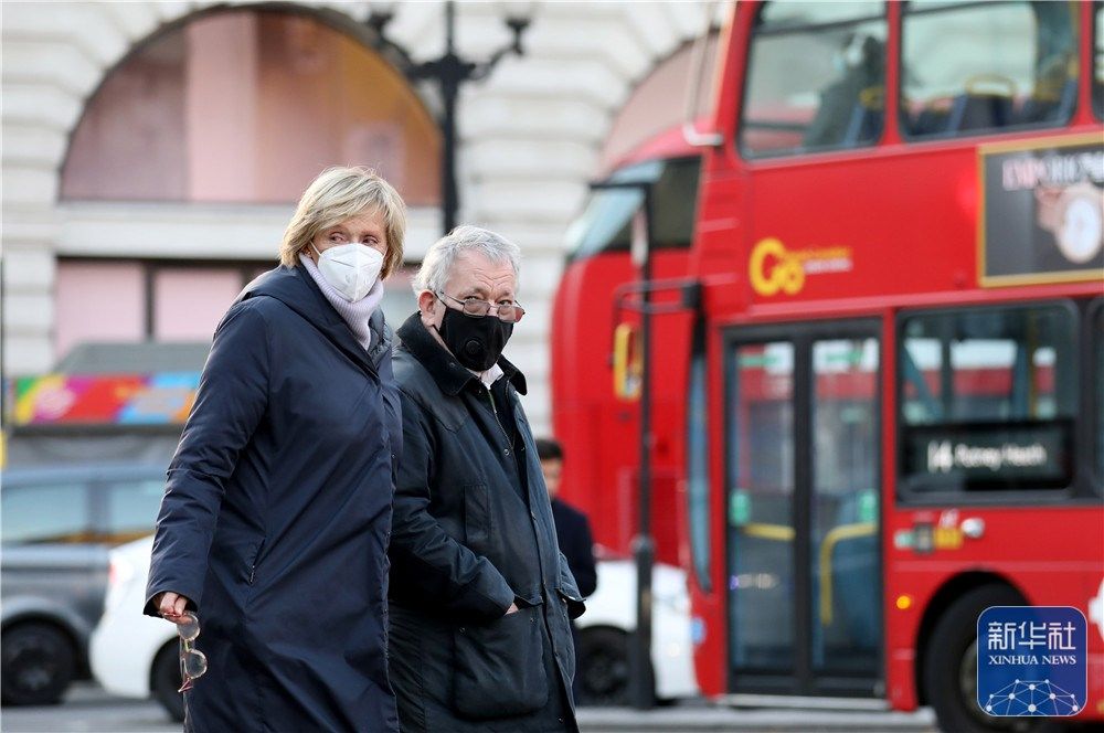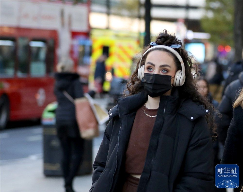 11月25日,人们在英国伦敦佩戴口罩出行。新华社记者 李颖 摄