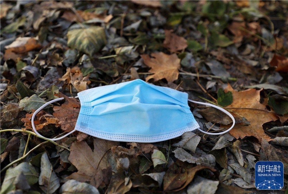 11月25日,在英国伦敦,一只口罩被丢弃在地上。新华社记者 李颖 摄