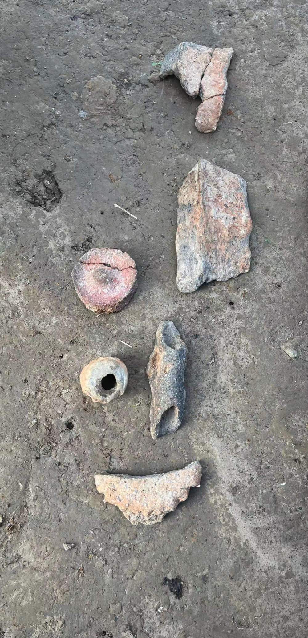 在“王家园遗址”考古现场勘探发现的部分陶器和石器。(图片由受访者提供)
