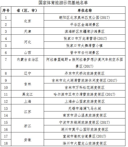 根据《体育总局办公厅 文化和旅游部办公厅关于开展2021年国家体育旅游示范基地申报工作的通知》(体经字﹝2021﹞195号),在各省(区、市)体育行政部门、文化和旅游厅(局)推荐申报基础上,经专家评审、现场评估和社会公示,现认定北京奥林匹克公园等47家单位为国家体育旅游示范基地。