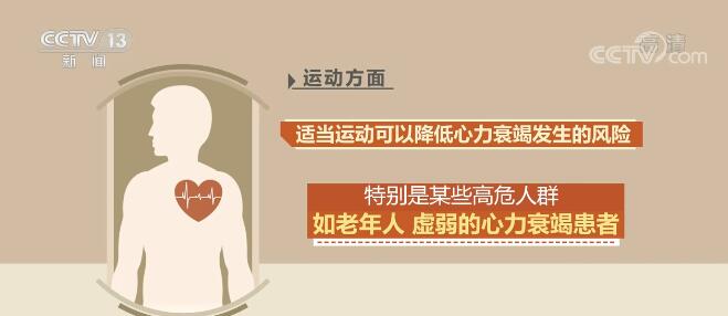 运动方面:适当运动可以降低心力衰竭发生的风险,特别是某些高危人群,如老年人、虚弱的心力衰竭患者。