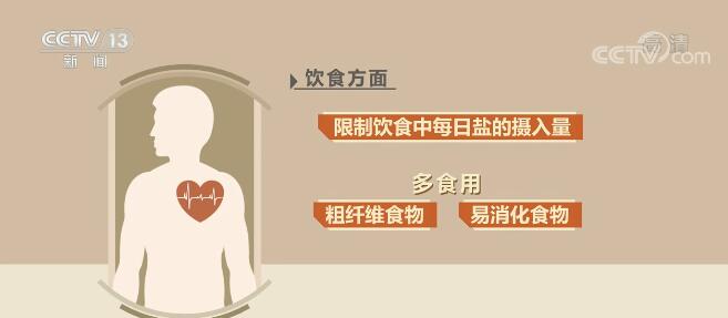 饮食方面:限制饮食中每日盐的摄入量,多食用些粗纤维食物,以及易消化的食物。