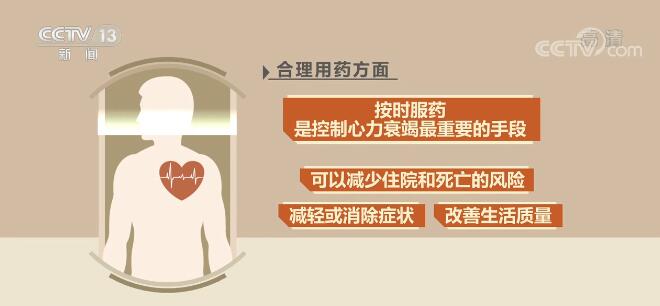 合理用药方面:按时服药是控制心力衰竭最重要的手段,可以减少住院和死亡的风险,同时可减轻或消除症状,改善生活质量。