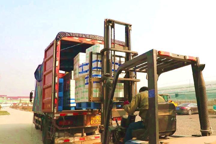 山东省兰陵县家瑞蔬菜种植专业合作社的蔬菜正在进行装车。(受访者供图)