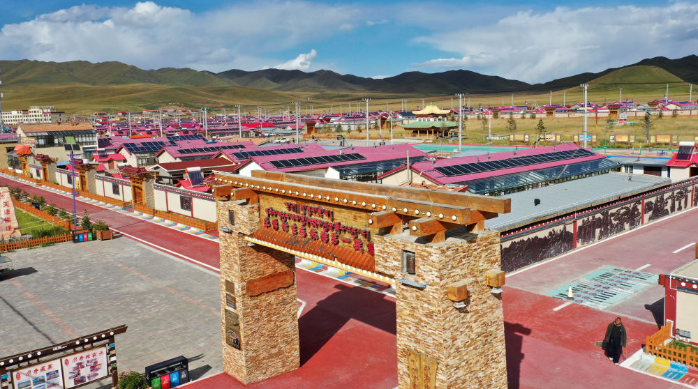 这是9月9日拍摄的甘肃省甘南藏族自治州碌曲县尕海镇尕秀村村貌(无人机照片)。新华社记者 陈斌 摄
