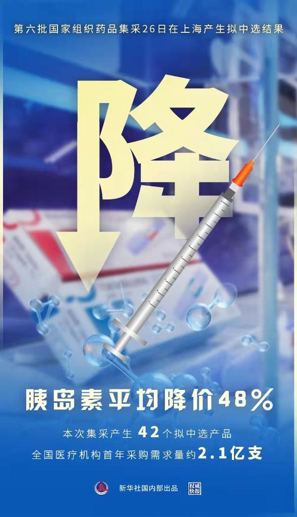 胰岛素降价48% 第六批国家药品集采产生拟中选结果