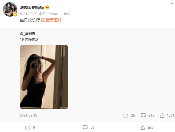 尽管有时候女儿发的照片有些大胆,尽管外界有着不好的言论,但父母总是在无声支持她。