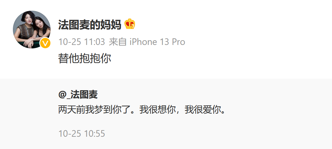 哈文看到女儿的照片,也转发并和女儿打了个招呼,母女俩互动甚是融洽。