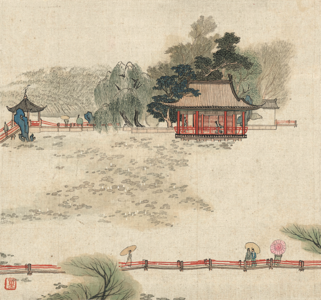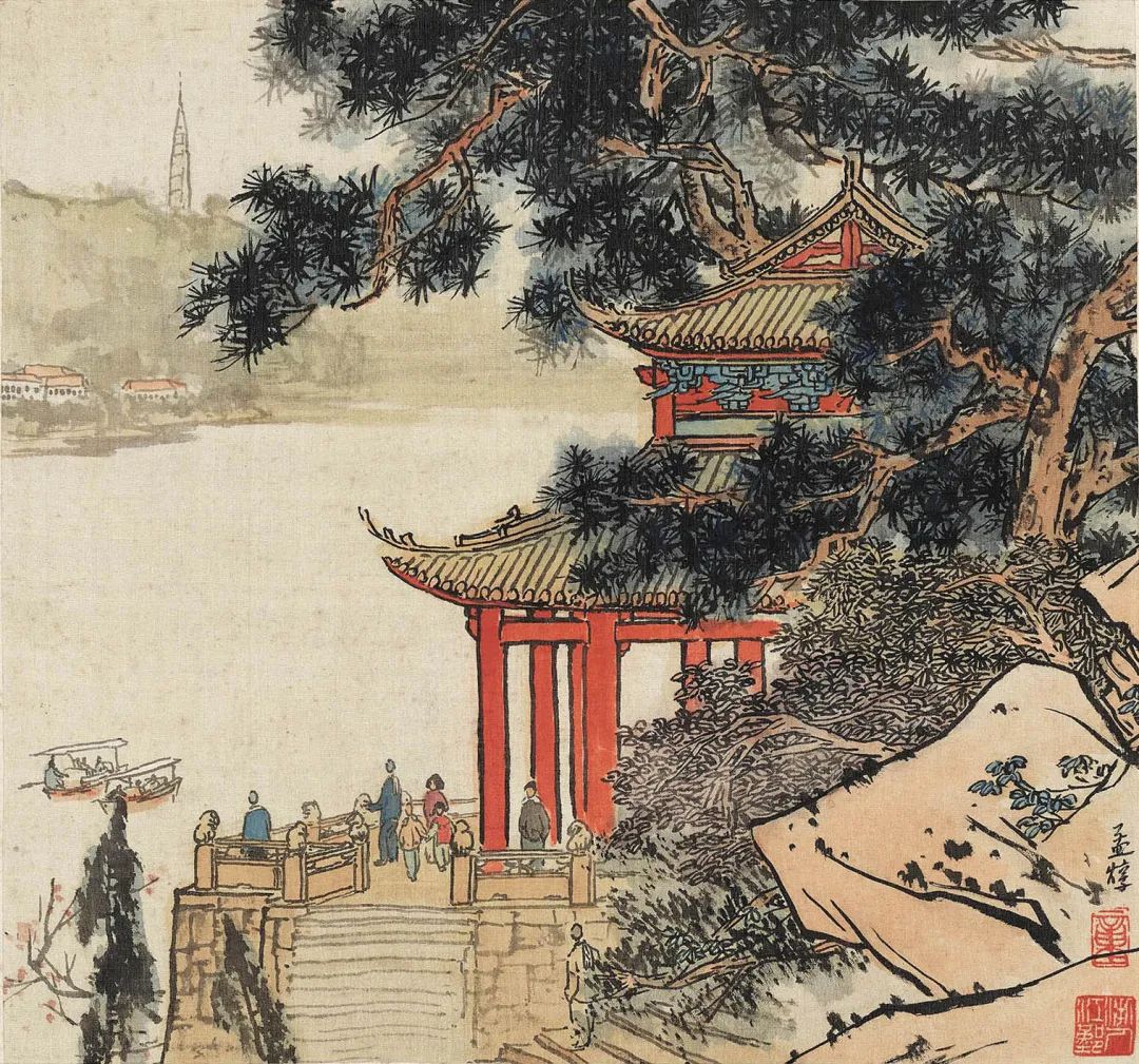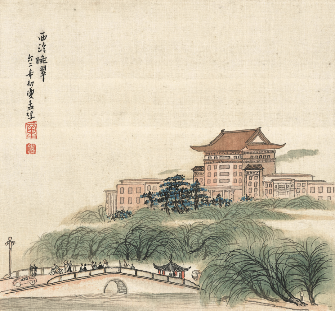 这套《西湖风景册页》是1962年于中国画系毕业创作时的作品,是五年本科学习的积累所产生的。在五年的学习中,潘天寿、顾坤伯、吴茀之、陆维钊等几位老先生,在诗、书、画等方面,通过专题讲座、经典作品解读、名家风格剖析、实践示范、下乡写生等形式,对我们学生进行授课指导,殷殷教诲,贯耳印心,使我终身受益。