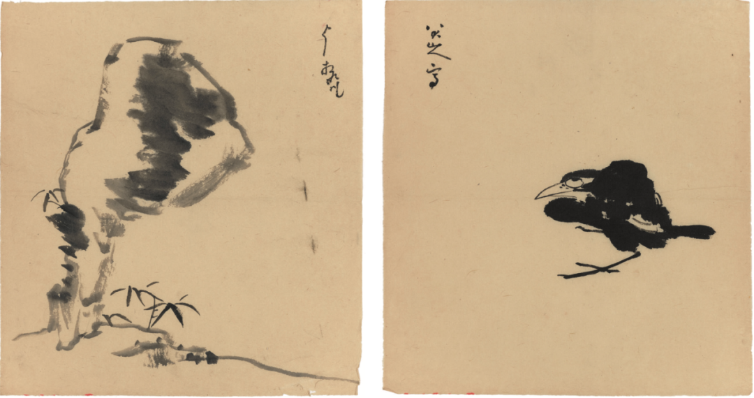 潘先生从八大山人作品的构图中,吸收的多重复合而高妙的艺术处理手法、蕴含中国古典哲学理念的思致,以及特殊的笔墨组构方式。只身孤立的浓墨厚重八哥、平坡疏竹孤脚奇石、独鸟对思枯树、河塘寥落的三两溪鱼,八大的作品,画面空阔,精炼的画材布置,留白的大小、形态的考究,去繁就简,无不体现着“大道至简”的中国古典哲学内涵思考下的宇宙胸襟,这些精华,在潘先生的构图中,成为融合自身笔墨特色的化用。