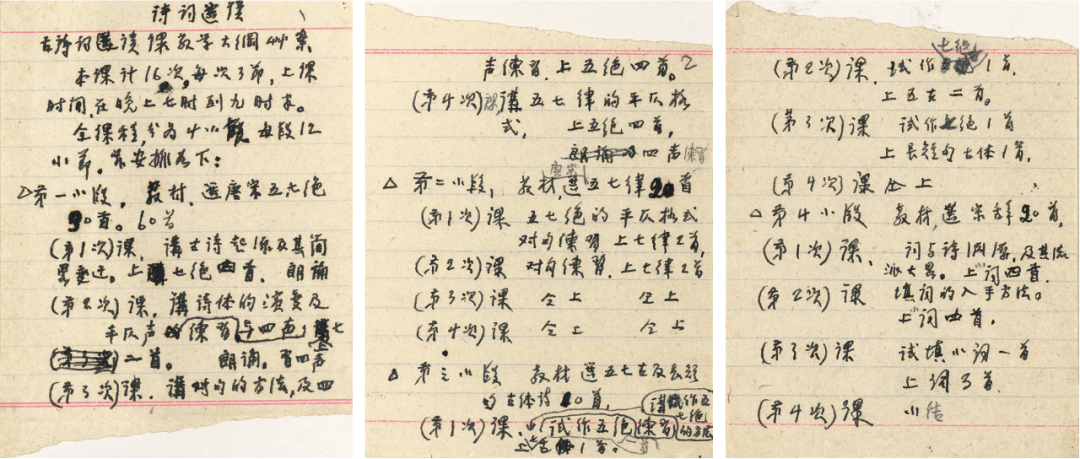 潘天寿《古诗词选读课教学大纲草案》手稿