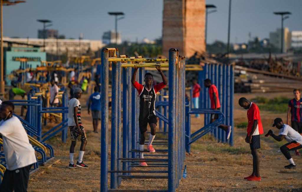有人在跑步,有人在拉单杠,有人在练深蹲和仰卧起坐,还有球队在这里训练。大西洋边,绵延两公里的健身园成为达喀尔一道靓丽的风景线,展现着达喀尔的生机与活力。