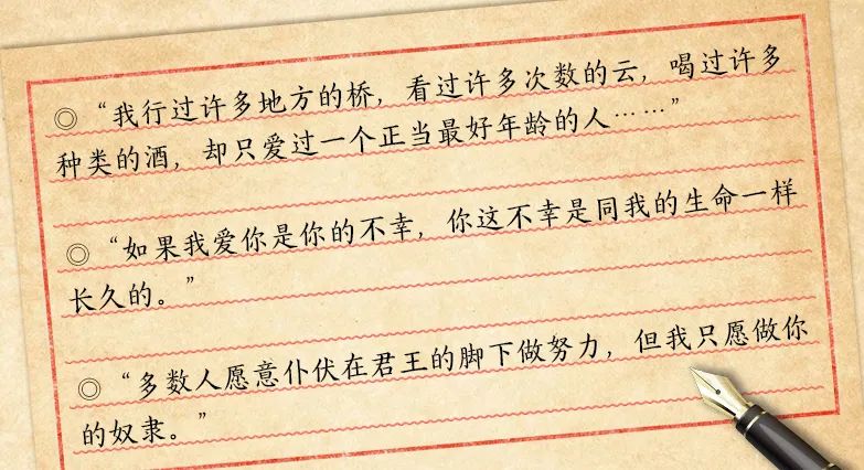 他第一次见到这个温婉俊俏的姑娘,就一见钟情了。于是就 “耐烦”地给她写了许多情书,痴情绝对: