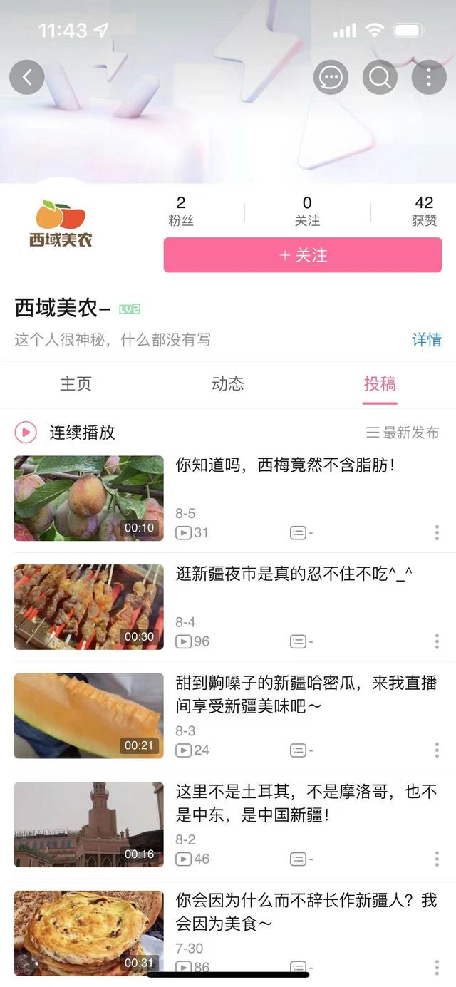 在抖音简介里,我们能获得不少信息,比如:13年电商经验,创业经验分享,西域美农创始人,抖音经验分享等