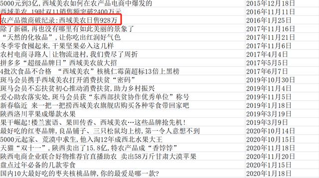 从品牌名就能看出,这是一个农产品相关的品牌,为此,笔者特意去查找了该品牌早些年的数据。