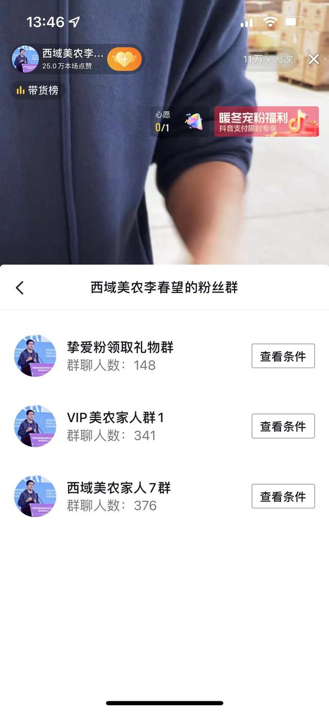 即便抖音私域的群门槛比较高,但依然有那么多粉丝达标进群了;即便直播不是本人,但因为账号人设IP塑造的成功,一样有上万用户买单。