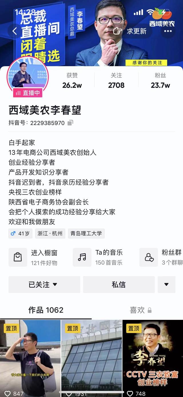 做这样的基础调查,是为了更好的去理解“西域美农李春望”这个账号的人设。