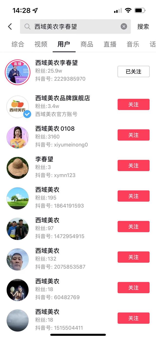 (排名第一的账号就是“西域美农李春望”,粉丝已有25.9W)