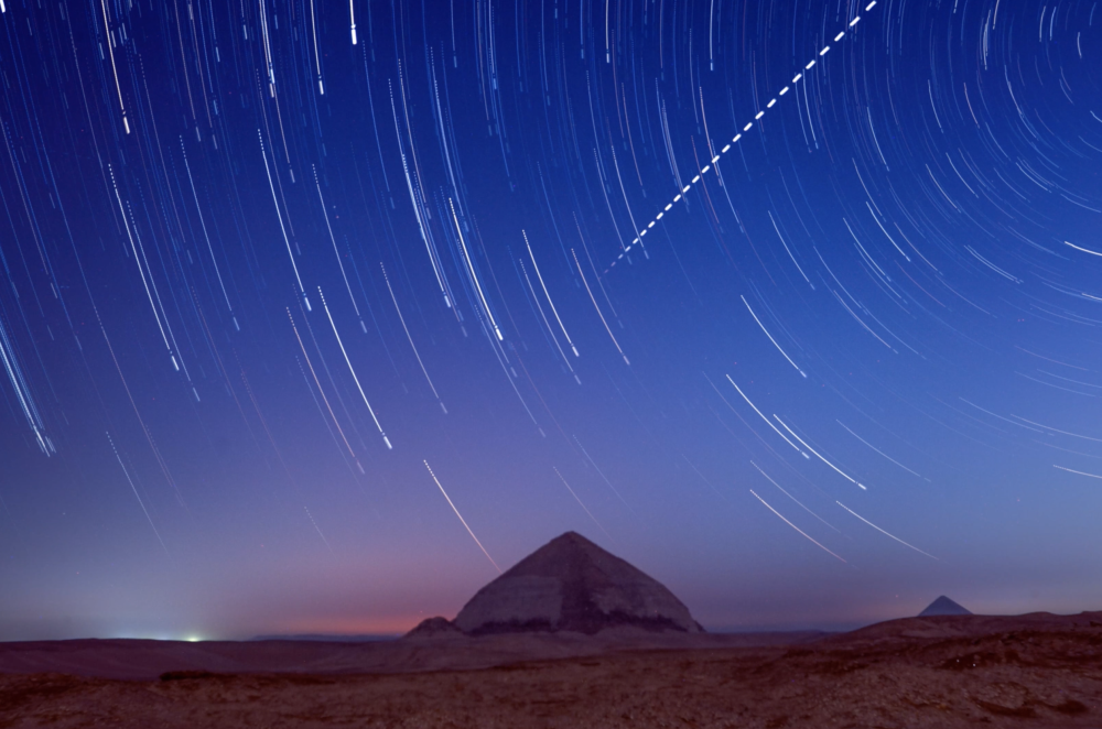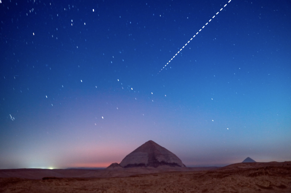 当地时间11月26日,中国空间站犹如一颗美丽的流星,飞过埃及有着4500多年历史的弯曲金字塔上空,两大古老文明完成了一次跨时空的对话。