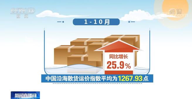 1—10月中国沿海散货运价指数平均为1267.93点,同比增长25.9%;中国出口集装箱运价指数平均为2481.82点,同比增长173.7%。价格水平在前三季度较高水平基础上继续提升。