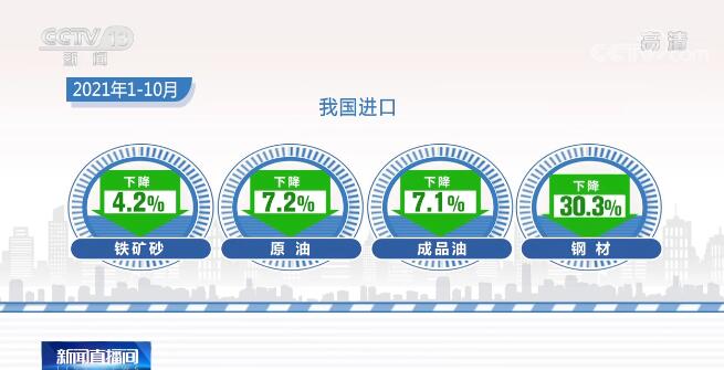 从不同货类看,随着国内保供政策效应不断增强,各类生产资料进口量维持下行走势,铁矿石、石油等大宗商品进口量明显走弱。今年前10个月,我国进口铁矿砂下降4.2%,原油下降7.2%,成品油下降7.1%,钢材下降30.3%。