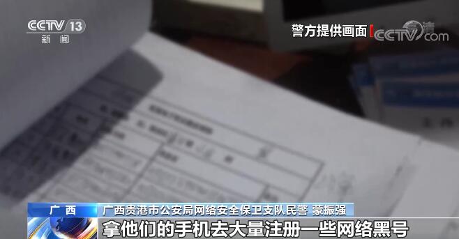 广西贵港市公安局刑事侦查支队民警 蔡华:该团伙披着合法的外衣恶意注册网络账号进行贩卖,三个月时间里,该团伙共注册了10万多个账号,涉及的村民有1.8万人,获利有10多万元。