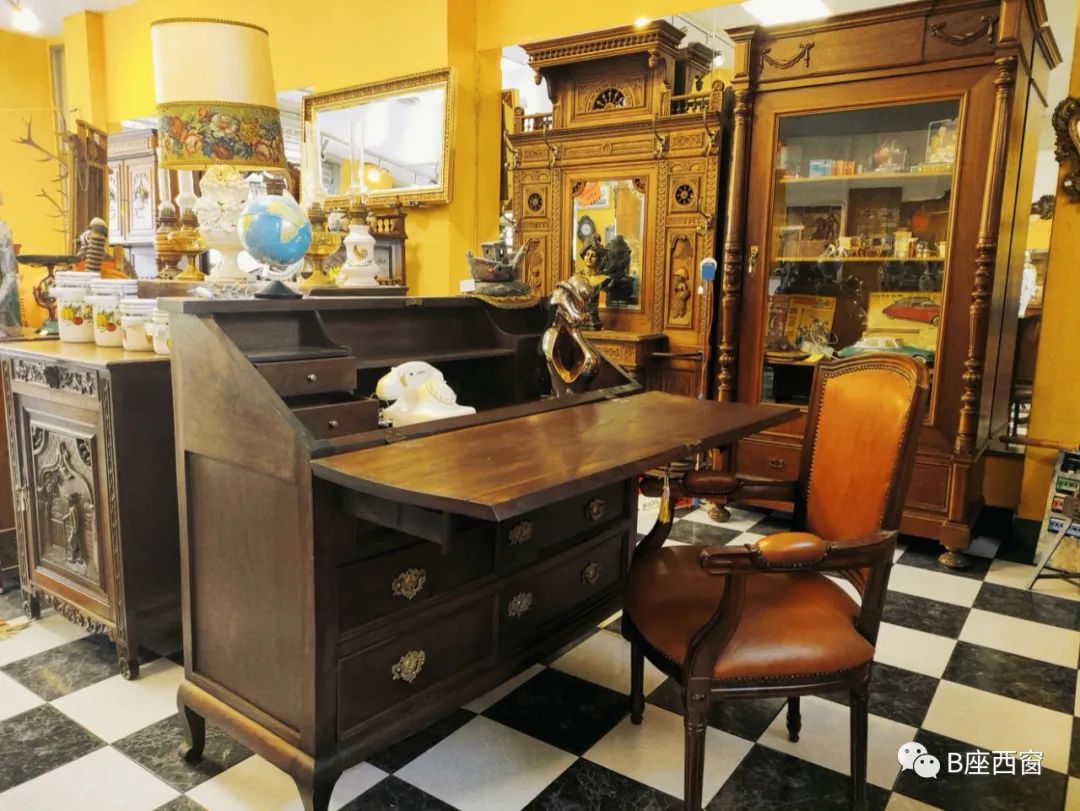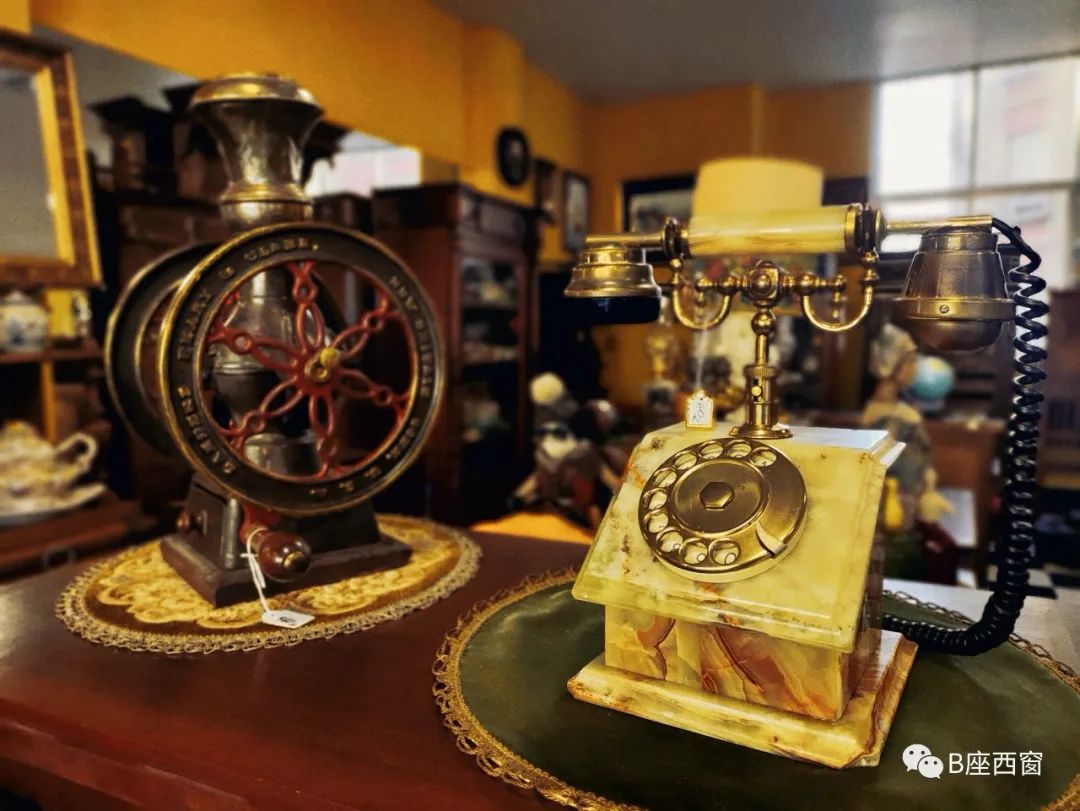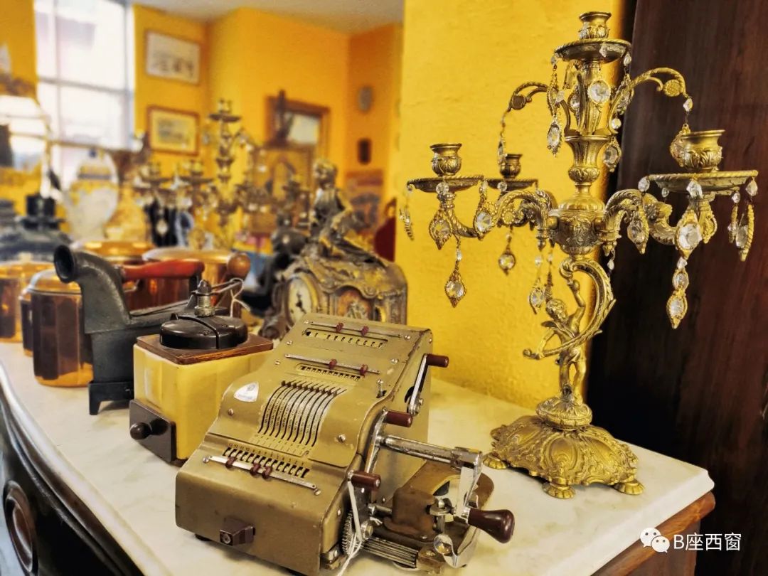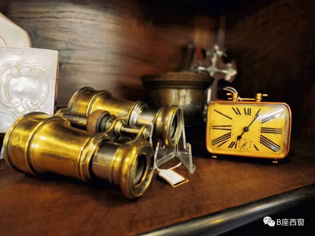我最常去的咖啡馆旁边有一家Vintage(旧物古董)小店。墨色的招牌,鹅黄的广告墙纸,橱窗擦得透亮。门脸不大,但也是“五脏俱全”:1984年的汉密尔顿怀表,边角微微破损的葡萄牙Azulejos(彩瓷画),来源并不可知的景泰蓝瓶,某一任墨西哥大使宅邸里收藏的油画,上个世纪各个年份的Hola杂志,桃木制的婴儿摇篮,老式打字机,生锈的缝纫机,黄铜的望远镜,一个世纪前的欧洲名媛用来记录舞会对象信息的双面珍珠贝母制的小本……百物杂陈,好似一个小型博物馆。店铺的门口铺着阿拉伯式地毯,里面是黑白格子的地砖,只有收银台旁站着一个中年男子,再没有其他店员。