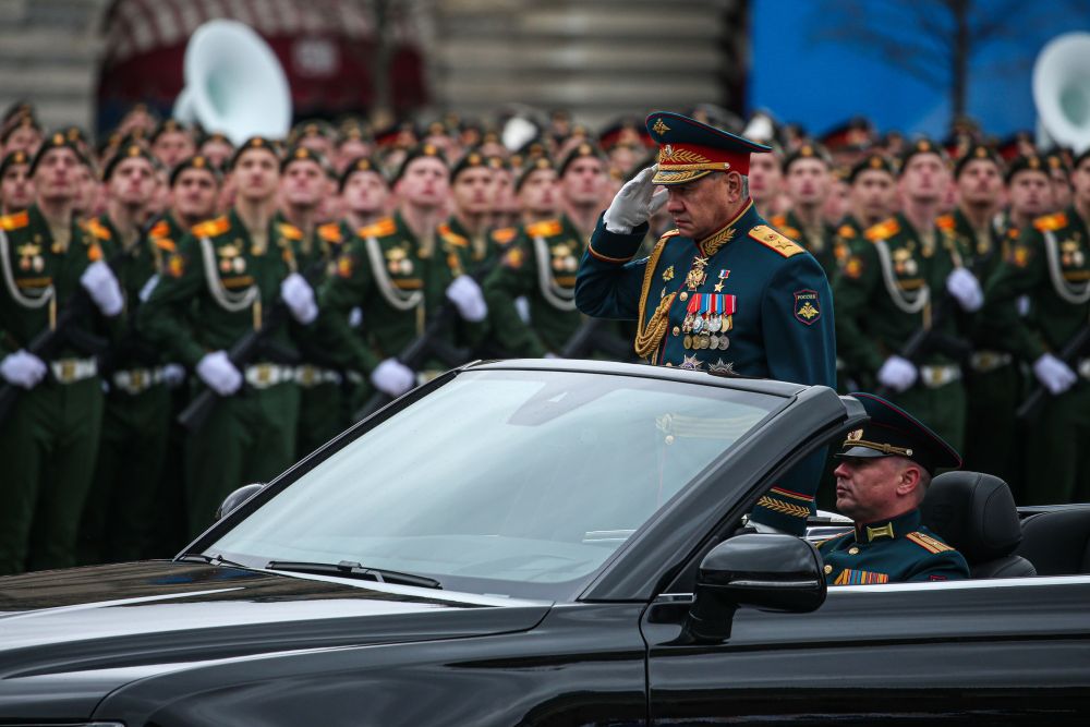 5月9日,在俄罗斯莫斯科举行的胜利日阅兵式上,俄国防部长绍伊古检阅部队。(新华社发,叶甫盖尼·西尼岑摄)
